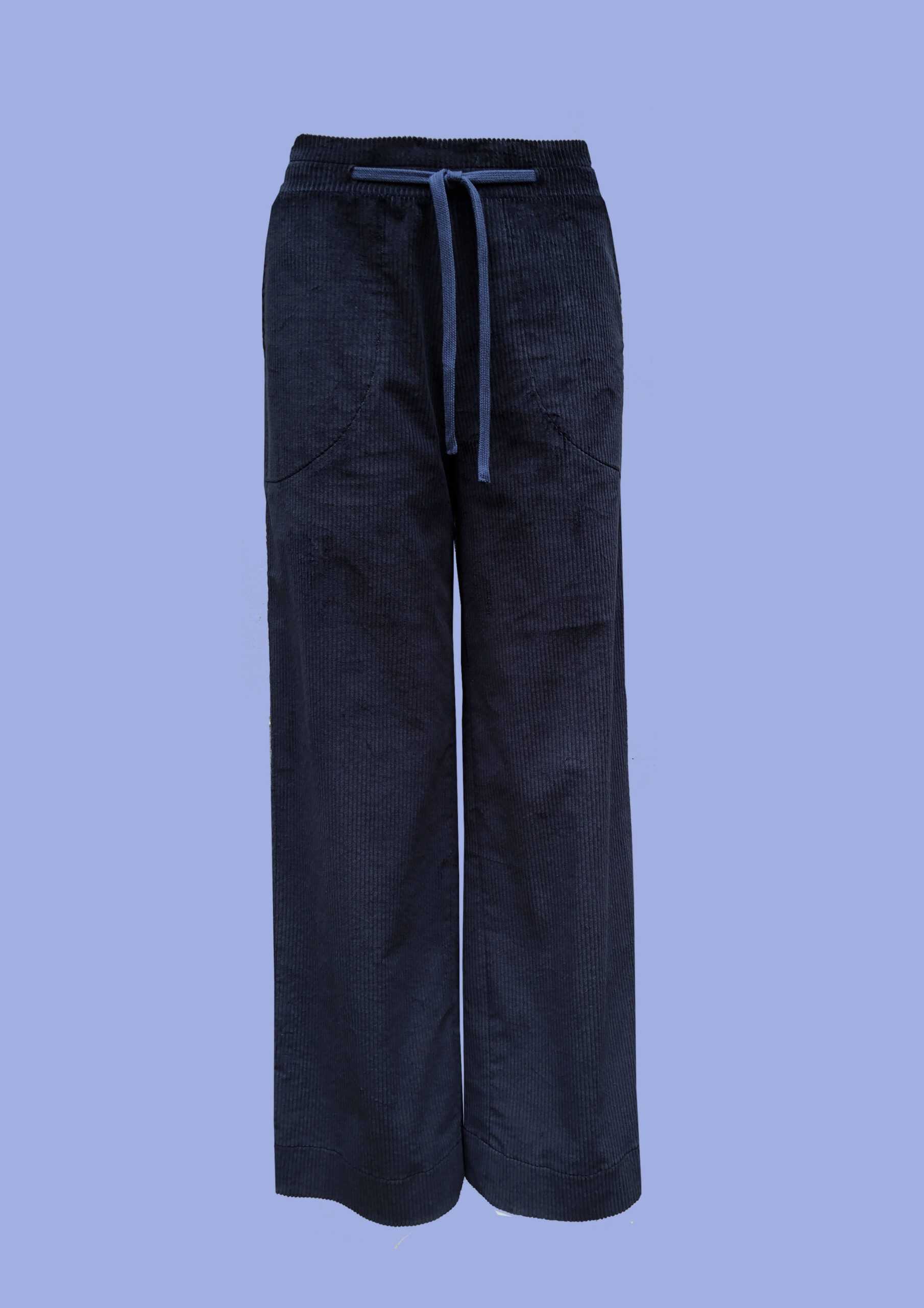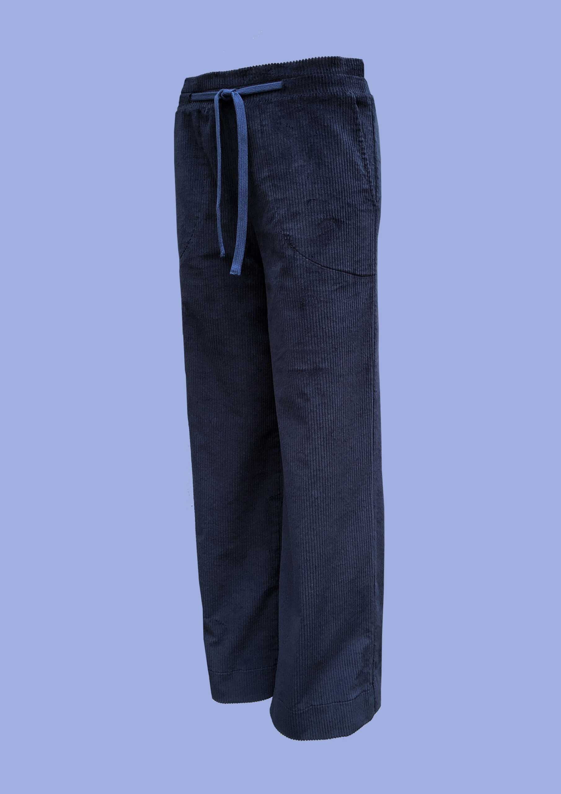 lässige bequeme Hose aus samtigem nachtblauem Baumwollkord