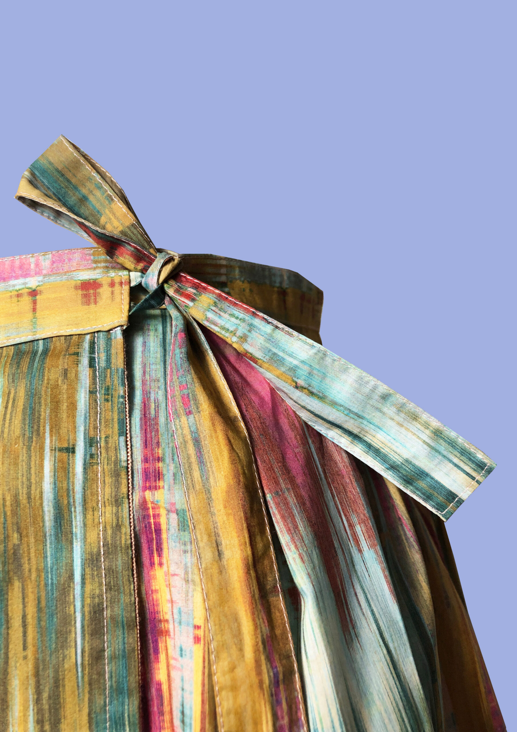edler Wickelrock mit Ikatmuster ockergelb/rosa/meergrün