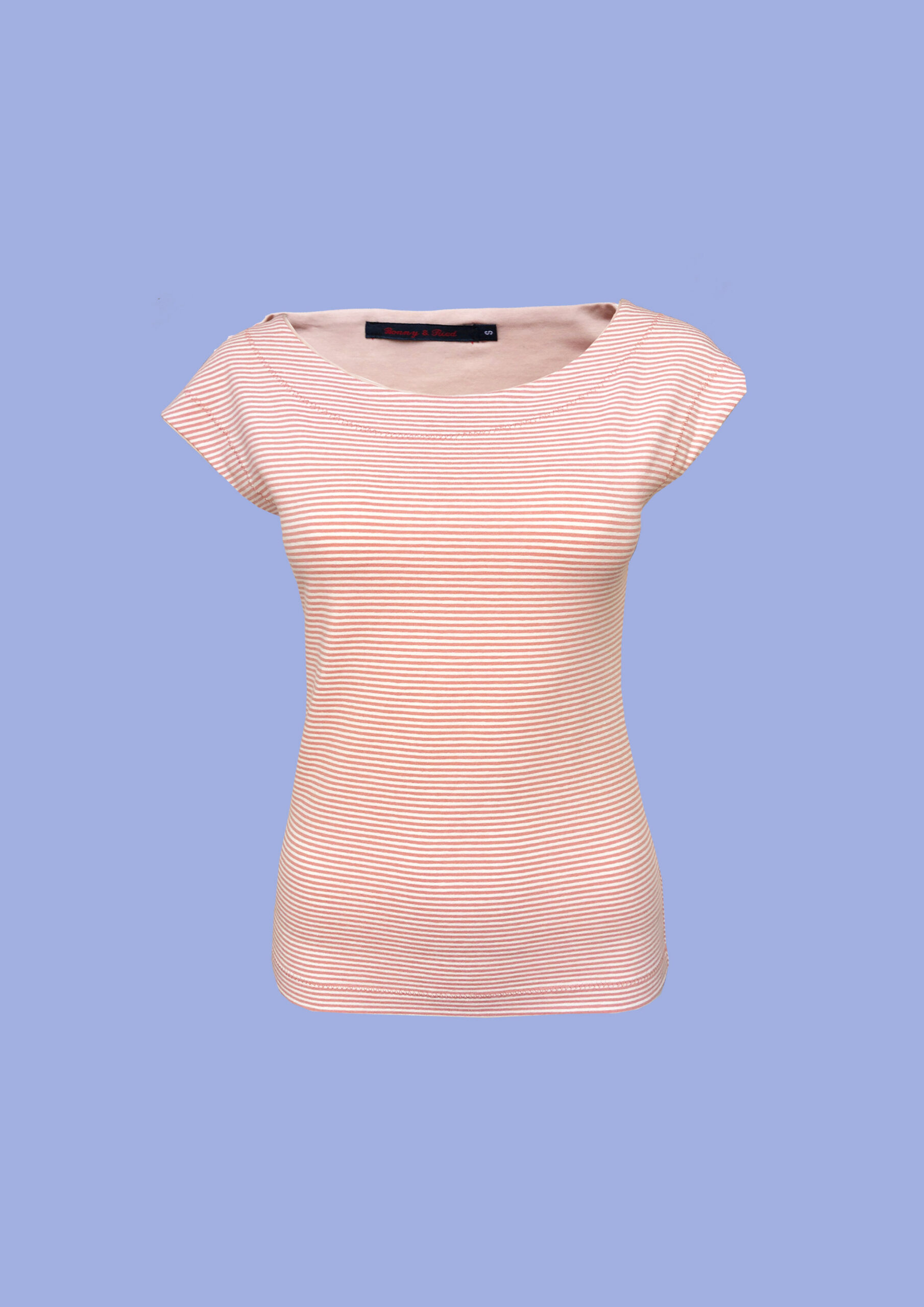 Top mit angeschnittenem Arm in feingestreiftem apricot/weiß Baumwolljersey